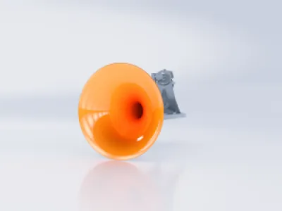 The Makrofon is a compressed air powered diaphragm sound transmitter. It is most commonly installed on board of all types of vessels, as well as on rail vehicles. Makrofons are reliable whistles distinguished by their low air consumption, strong sound intensity and wide range of audibility. Due to the simple and solid design, Makrofons are practically maintenance-free. The diaphragm housings are made of reliable materials, seawater resistant plastic is used for the protective cover only. For vessels the sound frequencies of Makrofons range between 90 Hz and 370 Hz and go up to 660 Hz for rail vehicles and may exceed 1000 Hz for alarm purposes.